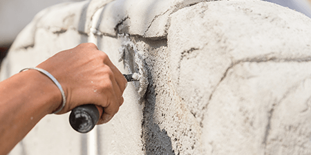 砂やセメントなどを混ぜた特殊なモルタルで、自然の石や岩、レンガなどをリアルに再現するモルタル造形。